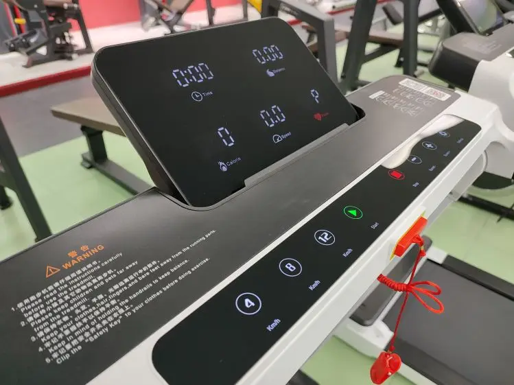 DC Motor incline Motorized Treadmill Motor power DC 2.0HP Speed range  1-14KM/H Running area 420X1200MM Display:5 inch LCD Blue backlit display Max user weight:100kgs Incline: 3 section manual incline Assembly size:1620x710x133mm
