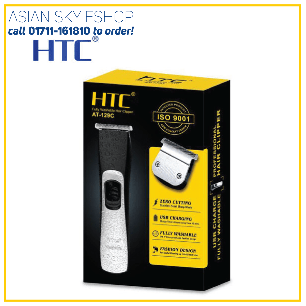 NEW MODEL proffesional HTC AT 129C waterproof hair clipper, hair trimmer , hair cutter for men women kids or family EASY to use 100% ORIGINAL [ FAST DELIVERY]] UBS Rechargeable Hair Clipper Charging Time: 6 Hours Full Power can be used for about 60 minutes With Charging Time Indicator Light Content: Hair Clipper AT-129C, Special Cord, Protective Cap & Cleaning Brush Detachable ceramic moving blade, titanium coated fixed blade Cord & cordless using 4 positions detachable comb 3, 6, 9, 12mm Super long service time over 60 minutes Hard steel blades trim the hair precisely without causing any damage to the skin Cordless operation makes it ideal to use while travelling Rechargeable DC motor makes it highly energy efficient