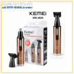 New Kemei KM-6629 2 In 1 Nose and Ear Hair Beard Trimmers – Gold Model No: 6629 Rechargeable design Power: 220-240 Voltage Waterproof Japan 440c steel sharp blade and fast shaving, Painless 8-12 hours fast and safe charging It could be used for nose & ear, Temple & Eyebrow, beard It could be used for men or women both Specifications of New Kemei KM-6629 2 In 1 Nose and Ear Hair Beard Trimmers – Gold