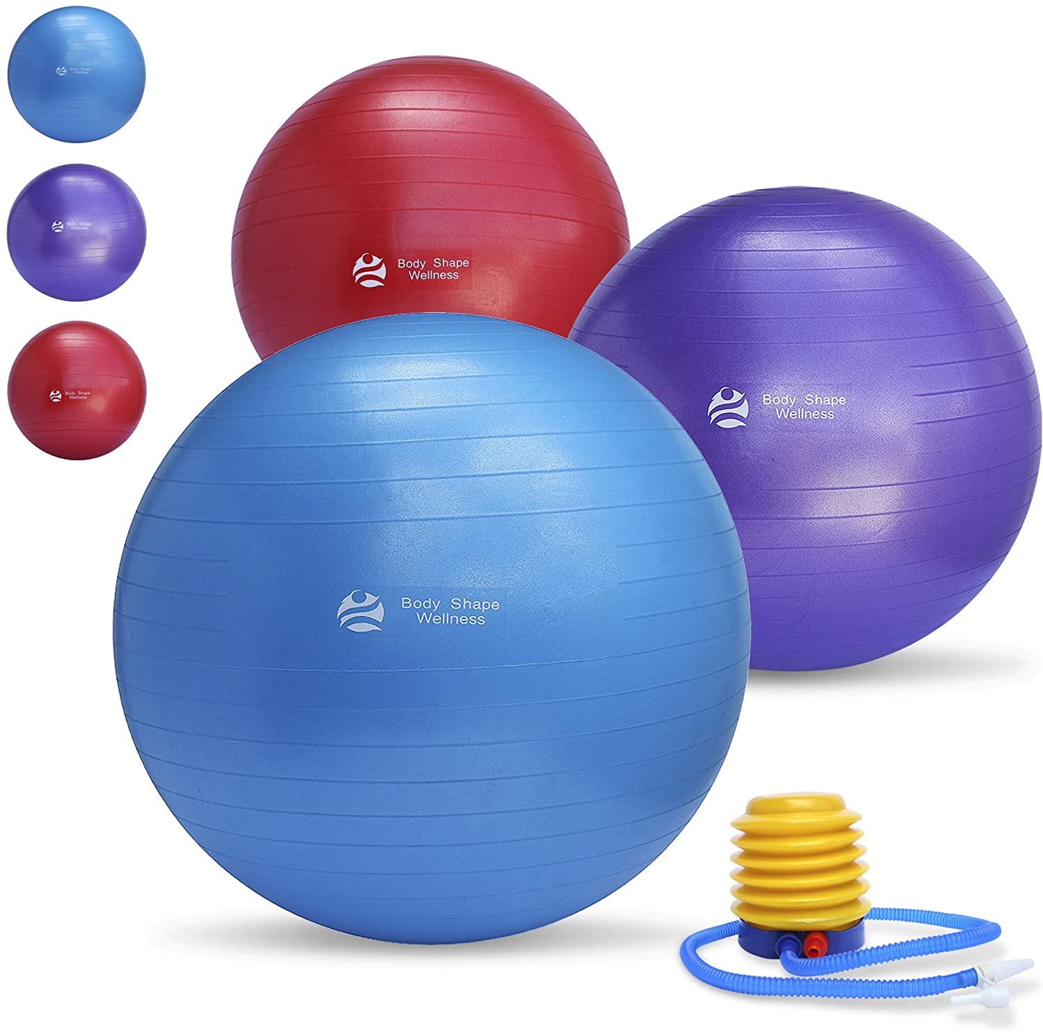 Body Shape Wellness – Premium Exercise Gym Quality Ball with Pump-55cm/65cm/75cm – Well Tested up to 2000lbs Antiburst Stability Ball